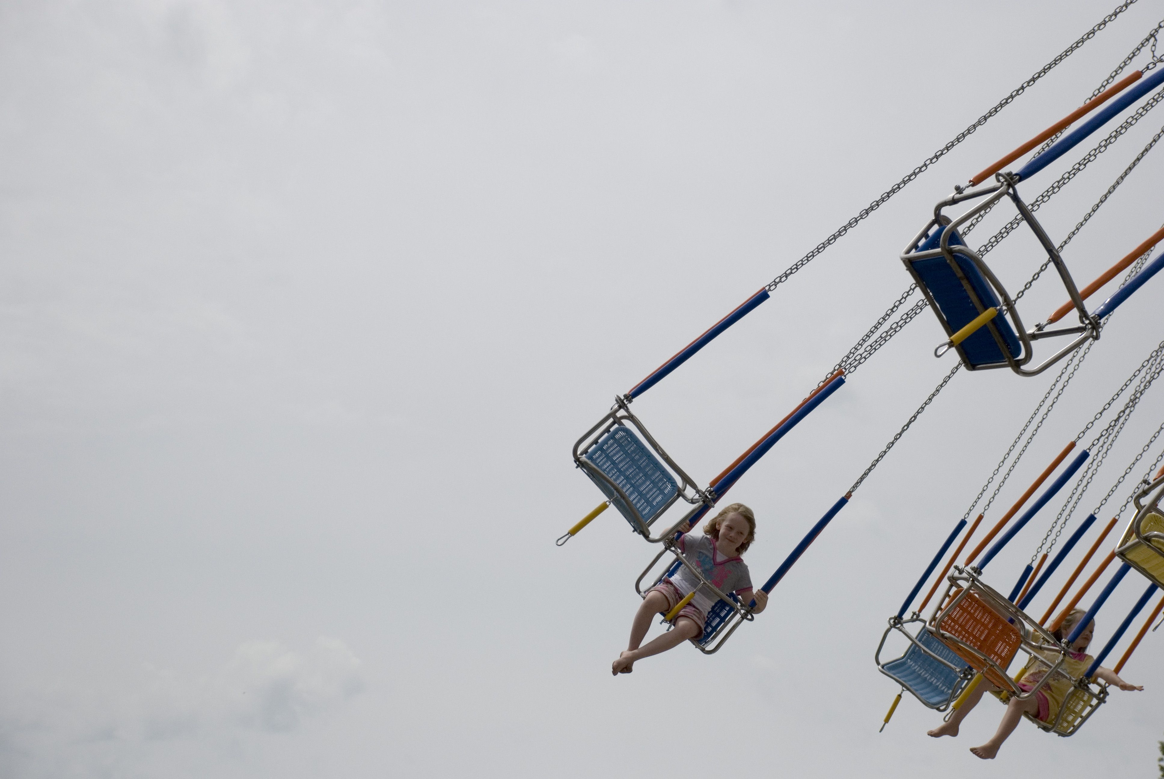 Flying Children Published April 13, 2008 at 3872 × 2592 in Turkey Festival, Fall 2007 ← Previous Next → Close up of kids riding the “flying chairs” ride