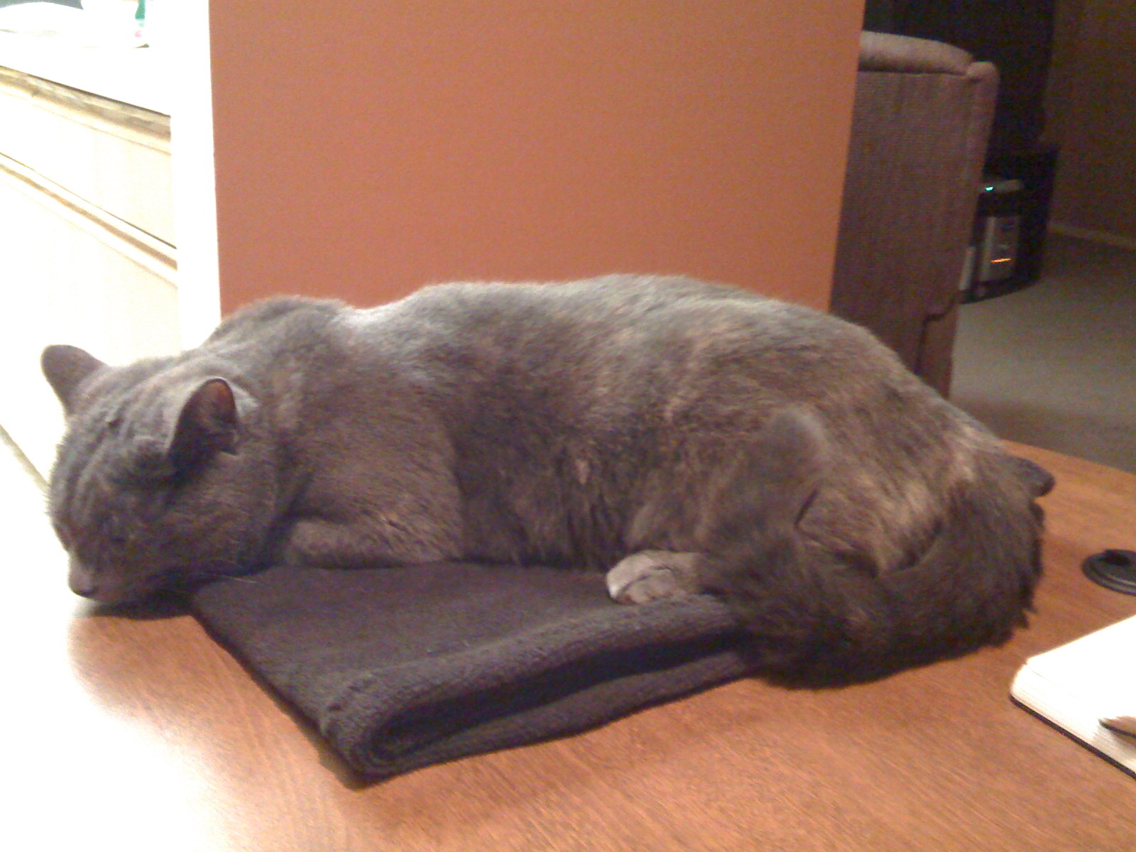 Indie on my Desk Published September 1, 2008 at 1600 × 1200 in Apartment Painted, (Almost) Furnished ← Previous My beautiful kitty on her blanket on my desk.