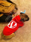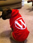 Ashley hand sewed the WordPress logo onto Riley’s hoodie. Like a boss.